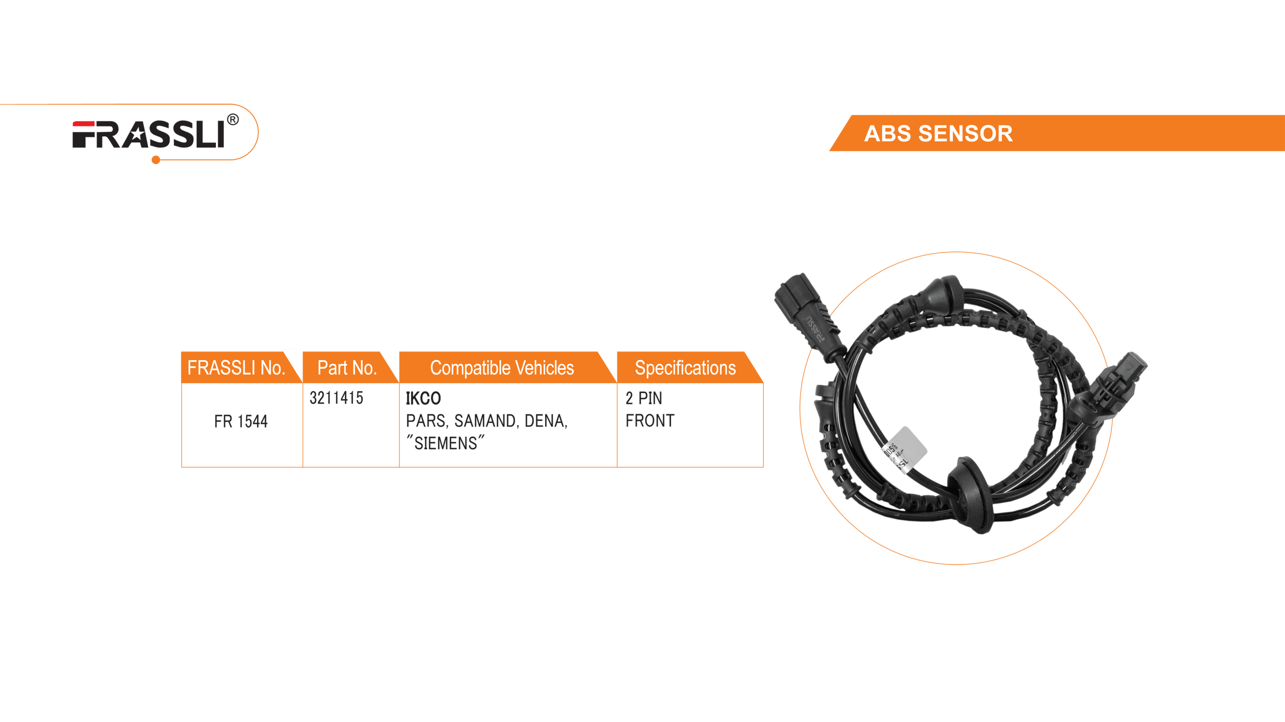 سنسور ABS چرخ جلو پژو 405-زیمنس (چپ و راست مشترک) کد 1544 فراسلی