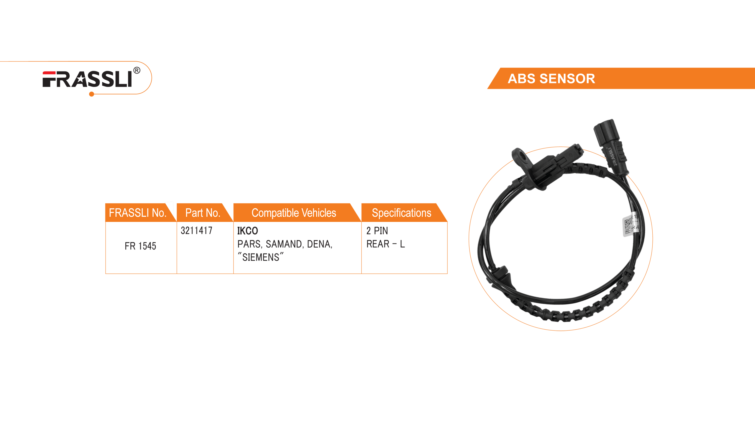 سنسور ABS چرخ عقب پژو 405-زیمنس (چپ) کد 1545 فراسلی
